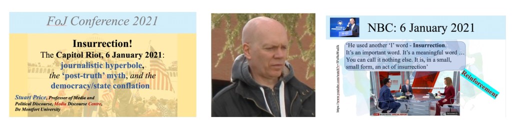 Professor Stuart Price gave a paper entitled ‘Insurrection! The Capitol Riot, 6 January 2021: journalistic hyperbole, the ‘post-truth’ myth, and the democracy/state conflation’, at the Future of Journalism Conference, 22 September 2021.